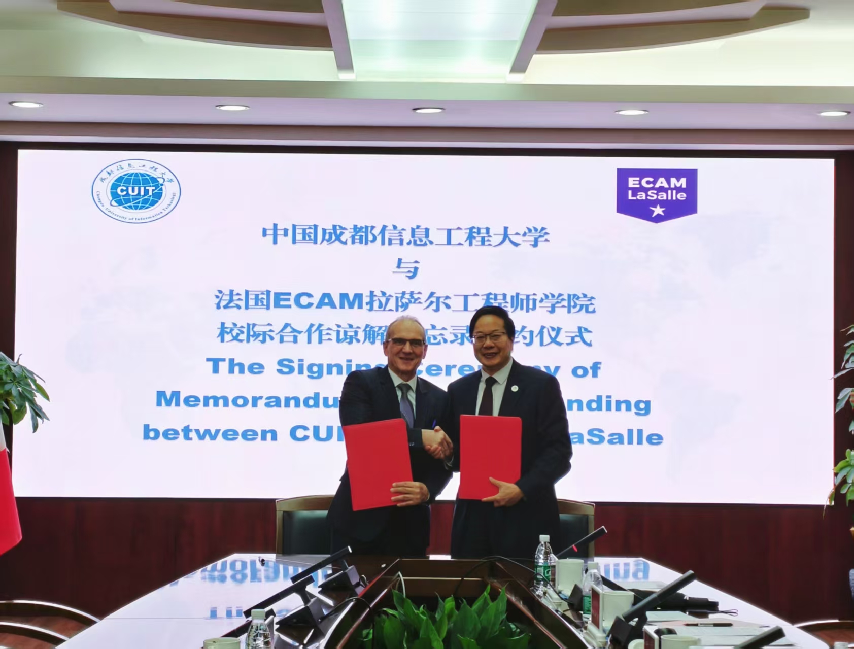 On Auguest 28th, Didier DESPLANCHE, president of ECAM LaSalle Engineering School in France, visited CUIT. The two sides held in-depth discussions on deepening international education cooperation and promoting joint talent cultivation. A memorandum of understanding was signed during the visit. Secretary of Party Committee Shen Huoming and Vice President Wu Xi attended the meeting, which was chaired by Yang Zhipeng, Director of the International Exchange and Cooperation Office (School of International Education).